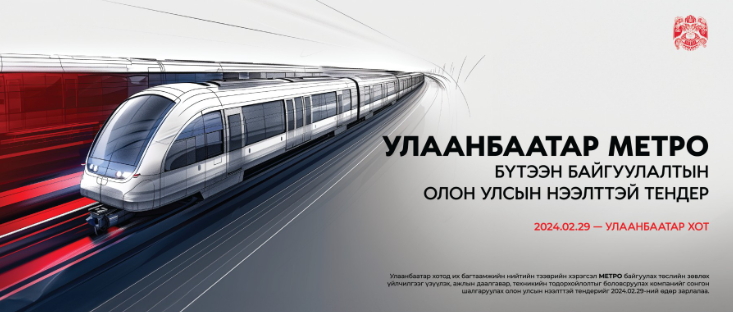 Нийслэл Улаанбаатар хотод их багтаамжийн нийтийн тээврийн хэрэгсэл буюу метро барих төслийн зөвлөх үйлчилгээ үзүүлэх олон улсын нээлттэй тендерийн шалгаруулалтыг хоёр үе шаттай зохион байгуулж буй. Энэ хүрээнд нэгдүгээр шатны тендер шалгаруулалт өнөөдөр буюу 2024 оны гуравдугаар сарын 18-ны 11:00 цагт хаагдсан. Үүнтэй холбоотойгоор Нийслэлийн Засаг дарга бөгөөд Улаанбаатар хотын Захирагч Х.Нямбаатар мэдээлэл өглөө.