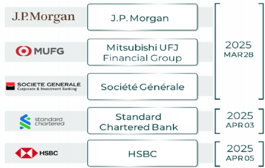 Эдгээр хэрэгцээ, шаардлагын хүрээнд төслийн санхүүжилтийг зохицуулах үүрэг бүхий Зохицуулагч банкыг сонгохоор санхүү, хууль эрх зүйн зөвлөхүүдийн хамтаар дэлхийн нэр хүнд бүхий найман банканд “Санал илгээх хүсэлт” (RFP) хүргүүлсэн. 2025 оны 03 дугаар сарын 28 болон 04 дүгээр сарын 03, 05-ны өдрүүдэд дараах таван банкнаас сонирхлоо илэрхийлсэн саналыг (EoI) хариу ирүүлсэн: