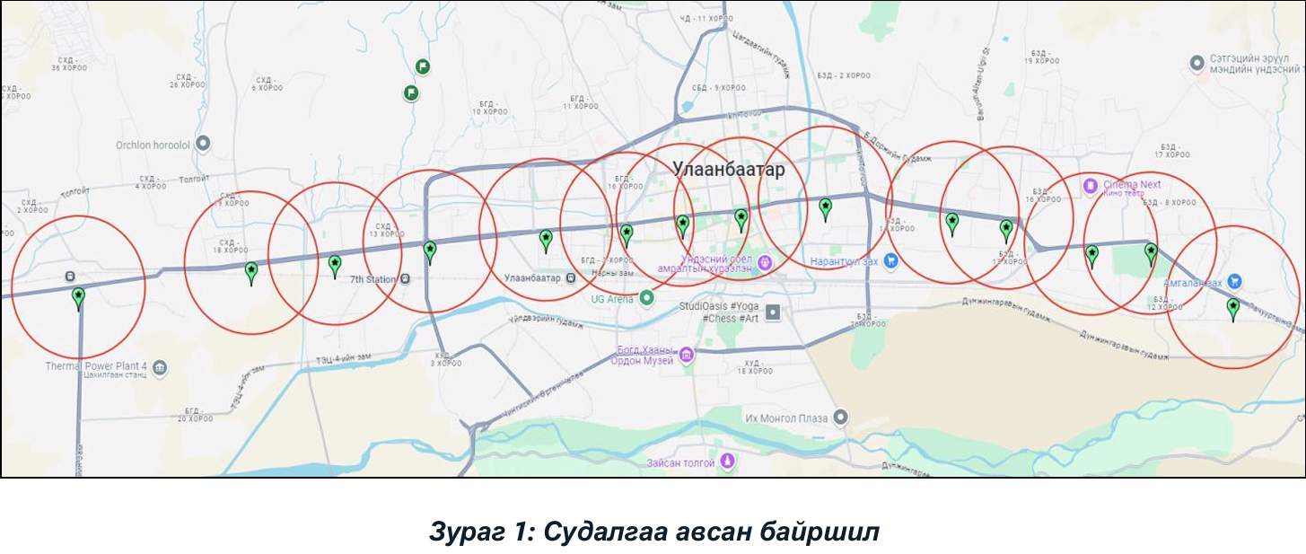 Ирээдүйн боломжит метроны өртөөний байршлаас 1 км радиуст судалгааг авсан. Нийт түүвэр 2,800 (цэг бүрээс 200 түүвэр)