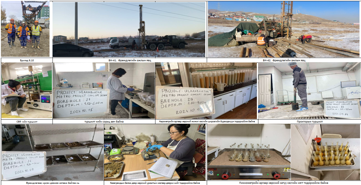 “Буурь хөрс” ХХК нь Их багтаамжтай нийтийн тээврийн хэрэгсэл “Метро”-ны төслийн менежмент, дэд зөвлөх үйлчилгээний хүрээнд “DOHWA ENGINEERING” ХХК-тай байгуулсан 2024 оны 9-р сарын 15-ны өдрийн гэрээг үндэслэн 17.7 км трассын дагуух талбайн геотехникийн судалгааны ажлыг ТЭЗҮ боловсруулах үе шатанд зориулан 2024 оны 9-р сарын 15-наас 12-р сарын 18-ны өдрүүдэд хийж гүйцэтгэв.
