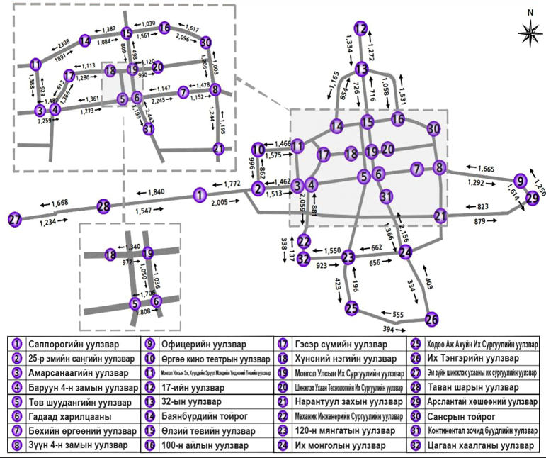 Судалгааны үр дүнгээс үзэхэд метроны шугамын дагуух 12 гол уулзварын хувьд: