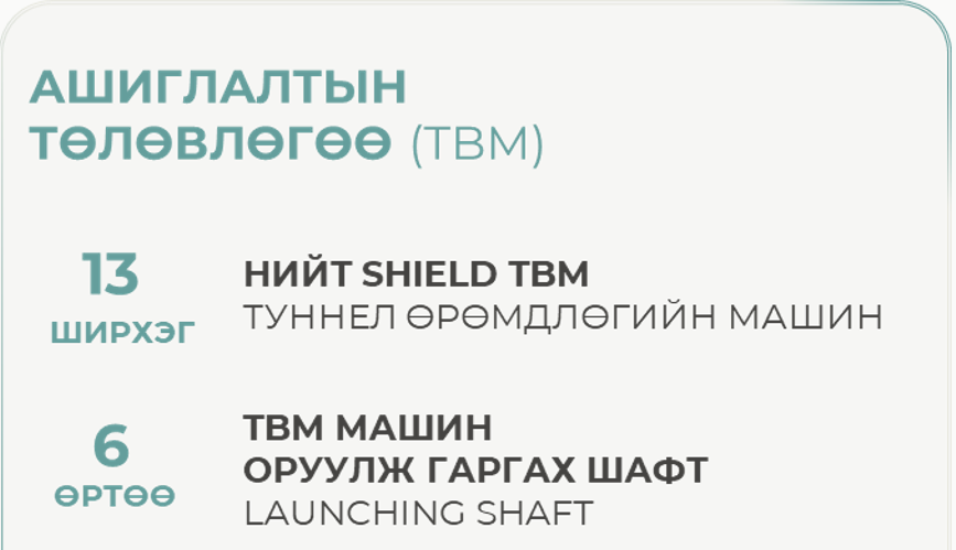 Мөн LAUNCHING SHAFT буюу TBM машин оруулж гаргах шафтнуудтай ойрхон барилга угсралтын талбай дээр TBM машины бэлтгэл ажлын талбай хэрэгтэй болно. Жишээ: