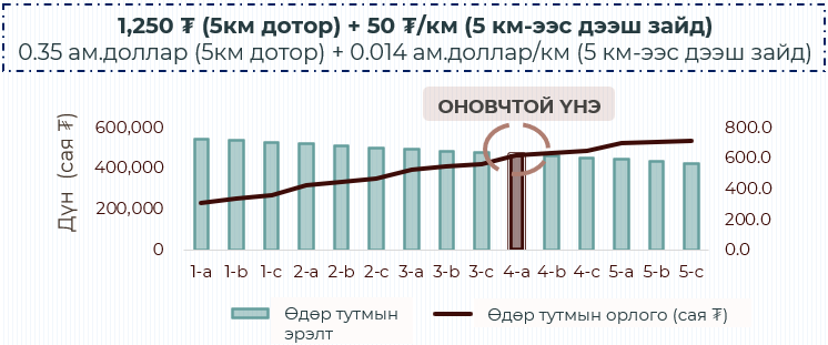 Tасалбарын үнийг тооцоолоход 2024 оны нийтийн тээврийн эрэлтийн судалгаа, иргэдийн дунд явуулсан Willingness to Pay (WTP) буюу төлөхөд бэлэн байдлын судалгааны үр дүн, мөн 2024 оны автобусны тасалбарын 500 төгрөгийн үнийг суурь өгөгдөл болгон ашигласан. Мөн нийтийн тээврийн төрлүүдийн уялдаа холбоог сайжруулах, шилжин суултыг дэмжих, хувийн автомашины хэрэглээг бууруулж нийтийн тээврийг сонгох хандлагыг нэмэгдүүлэх зорилгоор метро болон автобус хооронд зорчигчдын 20 хувь нь дамжин суух, мөн зөвхөн метрогоор зорчих гэсэн хоёр хувилбараар боловсруулахад шилжин суулт бүхий хувилбар нь илүү өндөр үр ашигтай, эдийн засгийн хувьд давуу талтай байна.