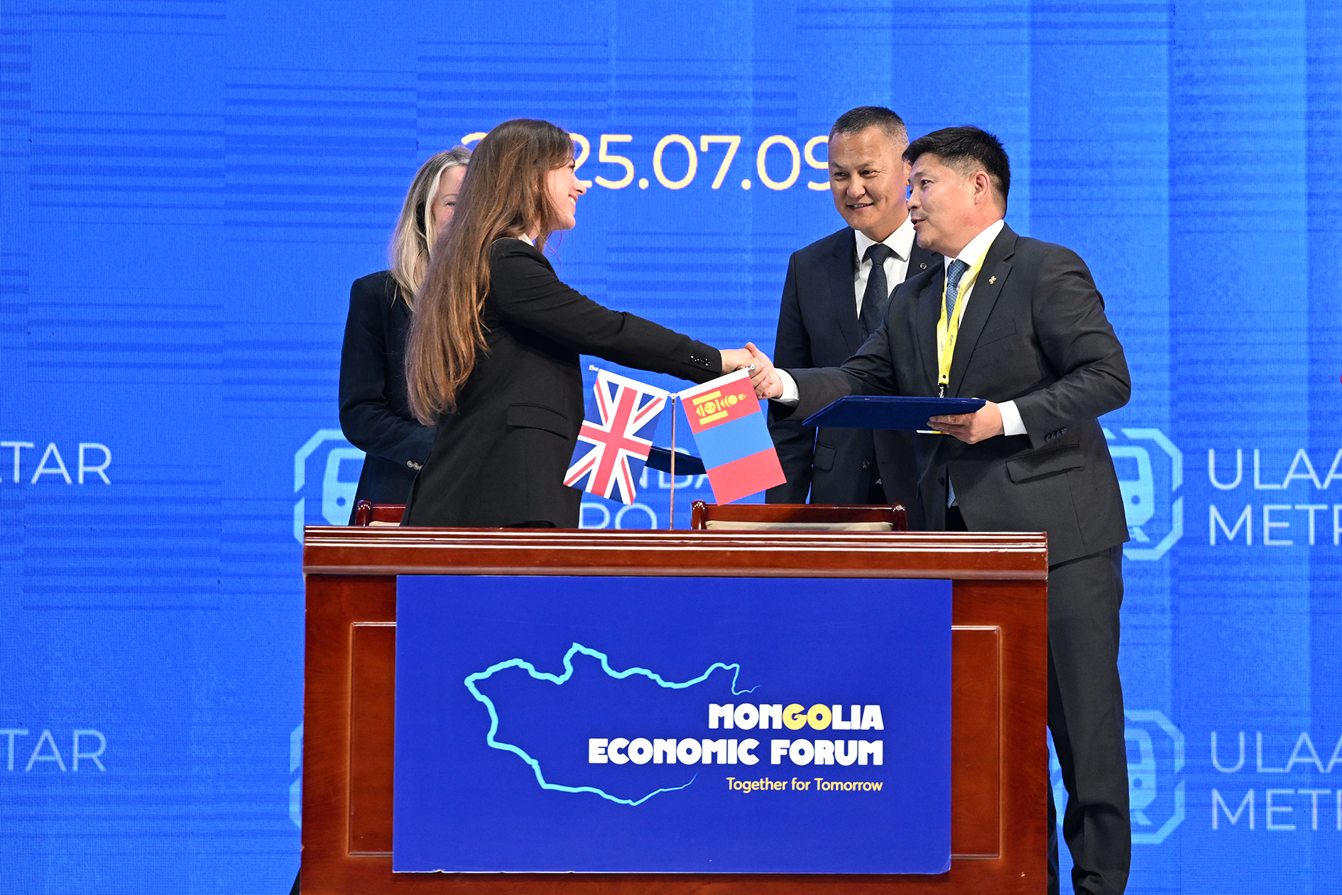 2025 оны 07 дугаар сарын 09-ний өдөр Улаанбаатар хотноо зохион байгуулагдсан Монголын Эдийн Засгийин Форумын Нийслэлийн Засаг дарга бөгөөд Улаанбаатар хотын Захирагч Х.Нямбаатар болон Их Британийн Экспорт, санхүүжилтийн агентлаг (UKEF) гадаад бизнесийн хамтын ажиллагаа хариуцсан төлөөлөгч Эмма Томас нар Санамж бичигт гарын үсэг зурлаа.
