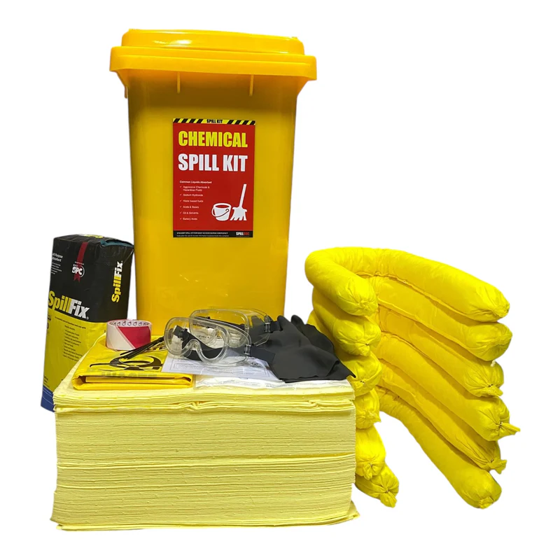 Spill kits, including absorbent materials, sand, and neutralizing agents, shall be provided at all locations where hazardous materials are stored or used, and all personnel shall be trained in their proper use.