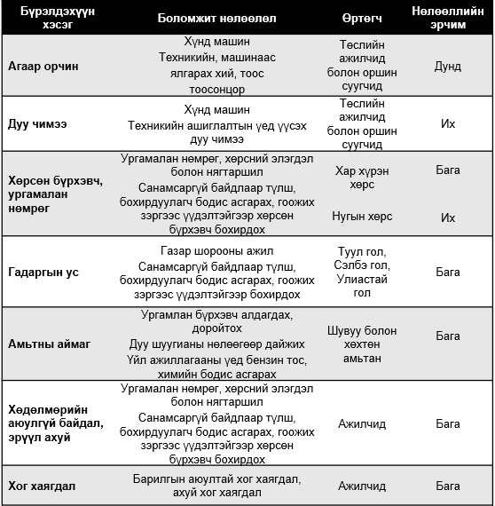 Төслийн байгаль орчны болзошгүй нөлөөллүүд( судалгааны үр дүн)