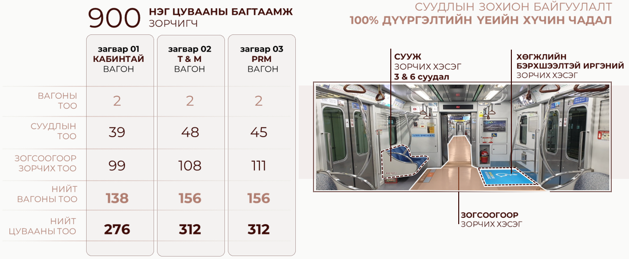 Хөдлөх бүрэлдэхүүний 100% дүүргэлтийн үеийн хүчин чадлаар тооцоолоод зорчигчдын тоог оруулсан байгаа.