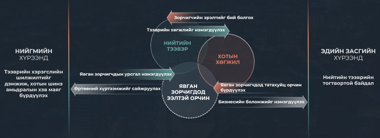 - НИЙТИЙН ТЭЭВЭР (Чанартай нийтийн тээврийн зангилааны орчимд хөгжлийг төвлөрүүлэх)