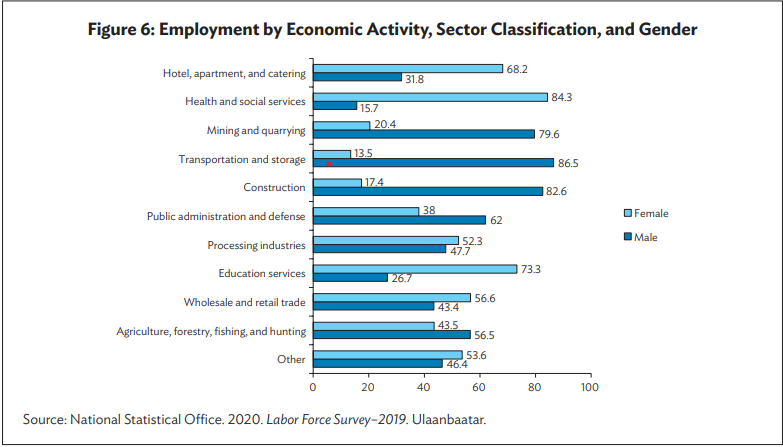 Улаанбаатар хотод эмэгтэйчүүд ажил, сургууль, худалдаа үйлчилгээний газрууд, эрүүл мэндийн байгууллагууд хооронд богино зайнд хэдий ч олон буудал дамжиж зорчдог бөгөөд ихэнхдээ хүүхэд эсвэл ахмад настай гэр бүлийн гишүүдийг хамт дагуулж явдаг. Эдгээр нь эмэгтэйчүүдийн зорчих цаг хугацааг уртасгаж, хүртээмжтэй, аюулгүй, найдвартай нийтийн тээврээс хамааралтай болгоход нөлөөлдөг. Эрэгтэйчүүдтэй харьцуулахад эмэгтэйчүүд хувийн тээврийн хэрэгсэлд бага зорчдог тул автобус, явган, албан бус тээврийн хэрэгслээс хамааралтай байх нь элбэг байна.