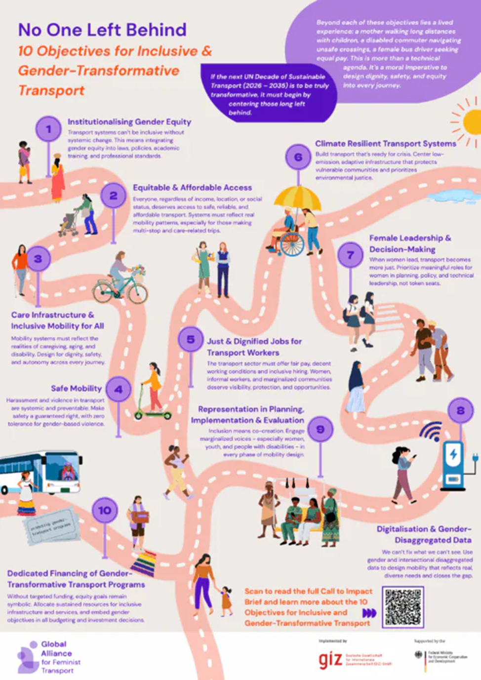 Зураг төслийн үе шат - Суурь дэд бүтцийн төлөвлөлтийн шатанд эмэгтэйчүүд болон эмзэг бүлгийн зорчигчдын төлөөлөлтэй санал солилцож, түүнийхээ үр дүнг бодитоор зураг төсөлдөө буулгах (Рамп, лифт, тактил зам, ахмад, хүүхэдтэй зорчигчдод зориулсан орчин, өвлийн нөхцөлд (цас, мөс) аюулгүй байдлыг хангах)