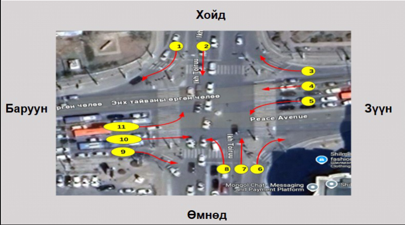 Судалгааны явцад уулзвар болон уулзварт ойр байрлах өндөр барилгууд дээр видео камеруудыг байршуулж, замын хөдөлгөөний урсгал, тээврийн хэрэгслийн төрлийг бүртгэн авсан. Энэхүү аргачлал нь хөдөлгөөний бодит нөхцөл байдлыг бүрэн тусгах боломжийг бүрдүүлсэн юм.